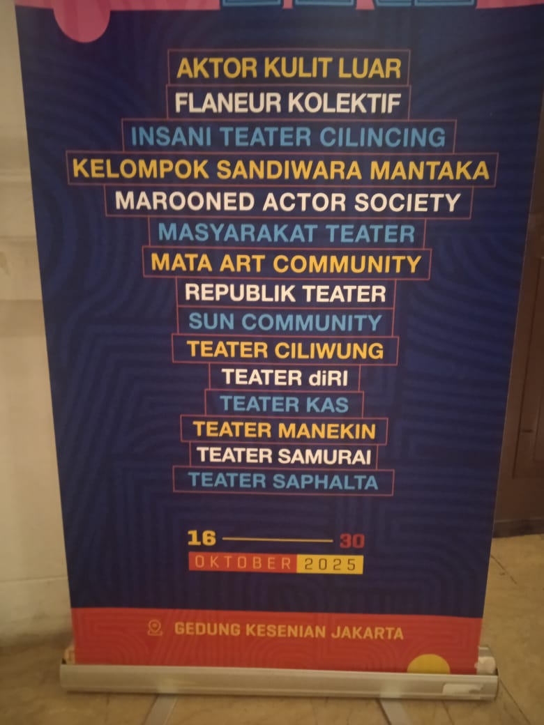 Festival Teater Jakarta (FTJ) 2025 resmi dibuka pada Kamis, 16 Oktober 2025 di Gedung Kesenian Jakarta. Tahun ini, FTJ menandai perjalanannya yang ke-52 tahun dengan mengusung tema “Re-Start” yang merupaan sebuah simbol titik balik seperti menekan tombol awal untuk menata ulang langkah dan membangun energi baru perteateran di Jakarta. (Fb : Postingan Dinas Kebudayaan DKI Jakarta)